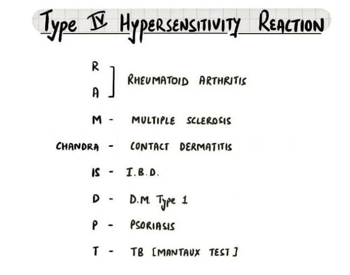 Type four hypersensitivity reaction is a cell-mediated reaction that can occur in response to contact with certain allergens resulting in what is called contact dermatitis or in response to some diagnostic procedures as in the tuberculin skin test. Certain allergens must be avoided to treat this condition.