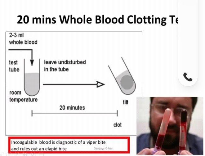 For snake bite ...20 mins of whole blood clotting test