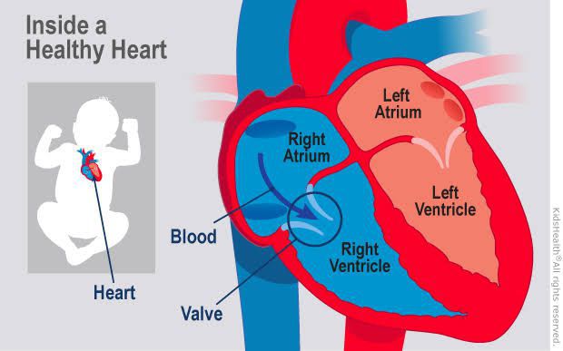 In the Heart, The upper two chambers are the atria, and the lower two are the ventricles.The chambers are separated by a wall of tissue called the septum. Blood is pumped through the chambers, aided by four heart valves. The valves open and close to let the blood flow in only one direction. The functiom of atria is to receive blood from the veins and pump it to the ventricles whereas the ventricles function in pumping blood out of the heart towards the body.