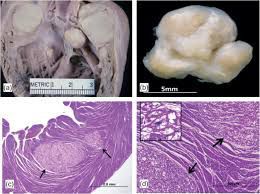A rhabdomyoma is a benign tumor of striated muscle. Rhabdomyomas may be either "cardiac" or "extra cardiac" (occurring outside the heart). Extracardiac forms of rhabdomyoma are sub classified into three distinct types: adult type, fetal type, and genital type.