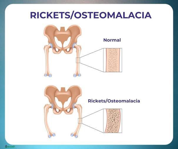 Osteomalacia refers to a marked softening of your bones, most often caused by severe vitamin D deficiency. The softened bones of children and young adults with osteomalacia can lead to bowing during growth, especially in weight-bearing bones of the legs. Osteomalacia in older adults can lead to fractures. The most common symptoms of osteomalacia are pain in the bones and hips, bone fractures, and muscle weakness. Patients can also have difficulty walking.