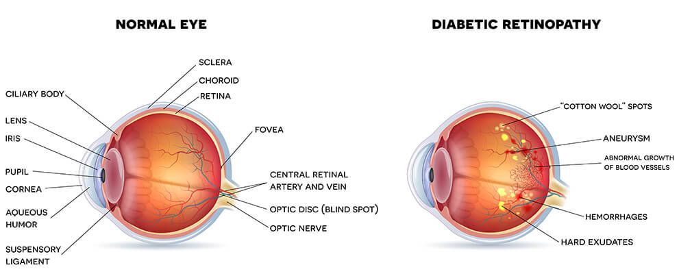 Diabetic retinopathy is a complication of diabetes, caused by high blood sugar levels damaging the back of the eye (retina). It can cause blindness if left undiagnosed and untreated. However, it usually takes several years for diabetic retinopathy to reach a stage where it could threaten your sight.