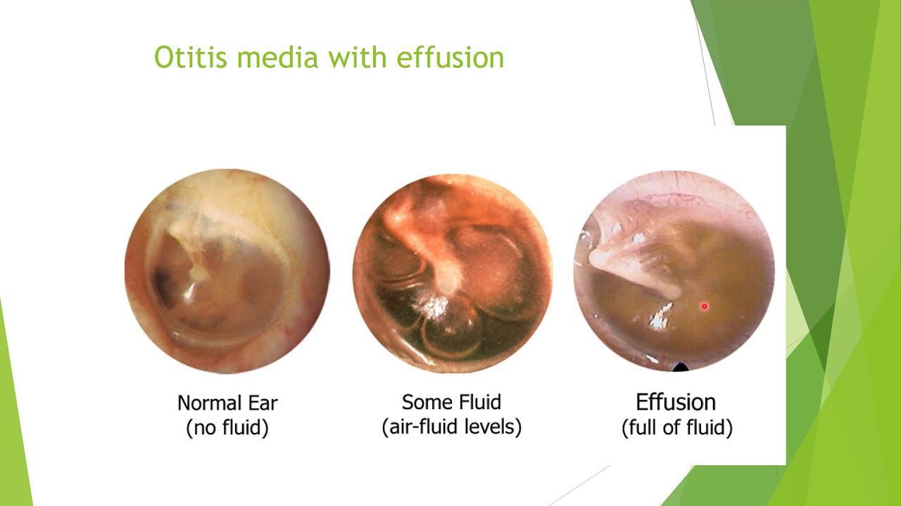Serous otitis media (SOM), also known as otitis media with effusion (OME), fluid in the ear, middle ear effusion (MEE), or secretory otitis media, is a condition in which fluid resides in the middle ear. "Serous" refers to the type of fluid that is collecting inside the middle ear.