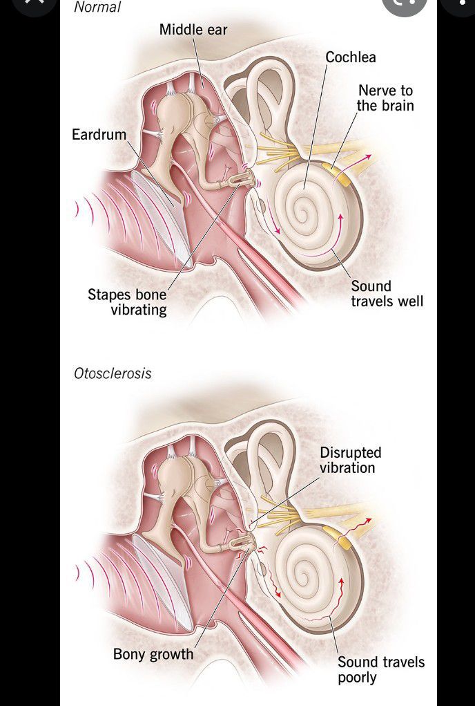Otosclerosis is a condition in which there's abnormal bone growth inside the ear. It's a fairly common cause of hearing loss in young adults. There are 3 tiny bones deep inside the ear that vibrate when sound waves enter.