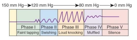 The sounds detected by the stethoscope in the auscultatory blood pressure measurement, known as Korotkoff sounds, are used to define systalic (high value) and diastolic (low value) pressures inside the arterial system.
