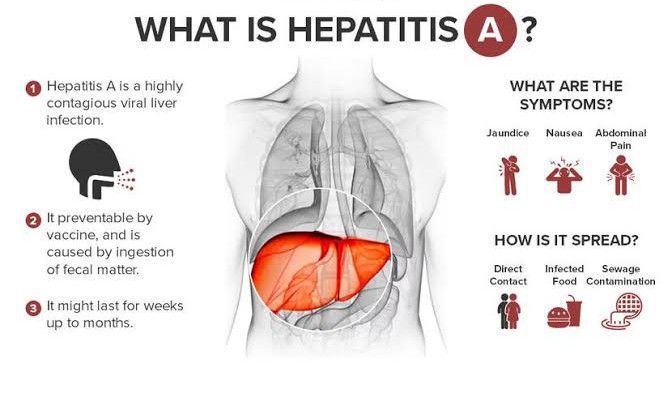 Hepatitis A is a vaccine-preventable liver infection caused by the hepatitis A virus (HAV). HAV is found in the stool and blood of people who are infected. Hepatitis A is very contagious. It is spread when someone unknowingly ingests the virus — even in microscopic amounts — through close personal contact with an infected person or through eating contaminated food or drink. Symptoms of hepatitis A can last up to 2 months and include fatigue, nausea, stomach pain, and jaundice. Most people with hepatitis A do not have long-lasting illness. The best way to prevent hepatitis A is to get vaccinated.