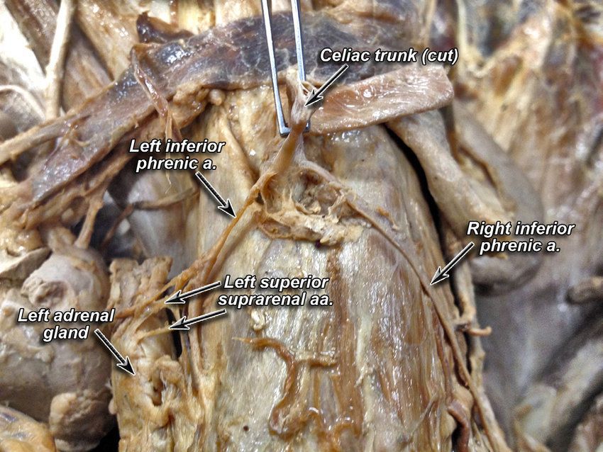 Inferior phrenic arteries arising from the coeliac trunk Origin abdominal aorta at the level of the 12th thoracic vertebra Branches Left gastric, common Hepatic and Splenic arteries Mnemonic: Left Hand Side Supplies Foregut of the gastrointestinal tract Clinical points Peptic ulcers, splenic artery aneurysms, Pringle's maneuver, celiac artery compression syndrome Guys WHAT ORGANS DOES THE COELIAC TRUNK SUPPLY? You can see your clue above ๐ and comment below๐