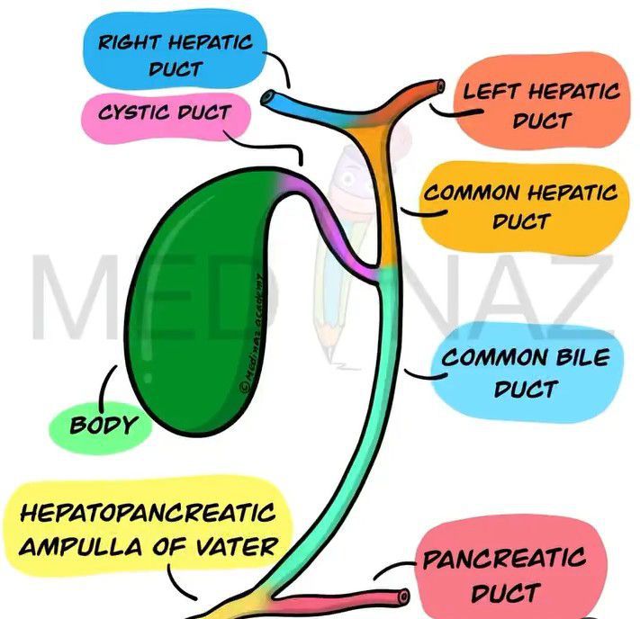 The gallbladder is a pear-shaped, hollow structure located under the liver and on the right side of the abdomen. Its primary function is to store and concentrate bile, a yellow-brown digestive enzyme produced by the liver. The gallbladder is part of the biliary tract. Here you can see the functional anatomy of gallbladder. Image by: https://www.instagram.com/tv/CcCggSODK1J/?igshid=YmMyMTA2M2Y=