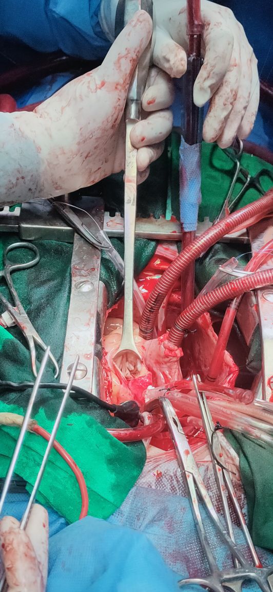 Heart Surgery Aneurysm of the non coronary cusp of aortic valve rupture into right auricle We repaired it.
