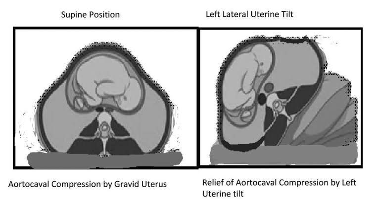 Aortocaval compression syndrome is compression of the abdominal aorta and inferior vena cava by the gravid uterus when a pregnant woman lies on her back, i.e. in the supine position.This pathophysiologic state occurs in a pregnant female, typically after 20 weeks gestation, when the patient is placed in the percent position.