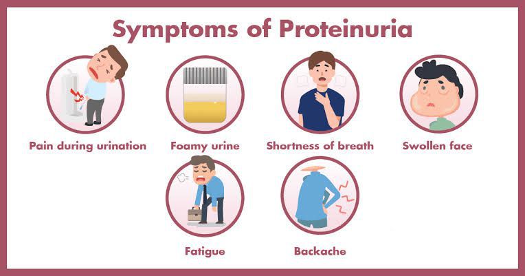 Proteinuria is increased levels of protein in the urine. This condition can be a sign of kidney damage. Proteins – which help build muscle and bone, regulate the amount of fluid in blood, combat infection and repair tissue – should remain in the blood.