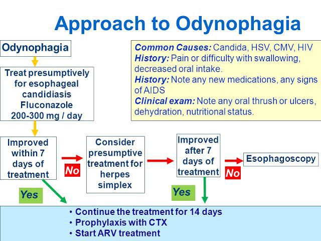 Odynophagia refers to pain on swallowing. The most common causes of odynophagia include caustic ingestion, pill-induced esophagitis, radiation injury, and infectious esophagitis (Candida, herpesvirus, and cytomegalovirus;