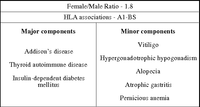 Autoimmune polyendocrine syndrome type II, also known as Schmidt syndrome, is a rare autoimmune disorder in which there is a steep drop in production of several essential hormones by the glands that secrete these hormones. Fatigue, anorexia, dizziness, muscle and joint pain, decreased libido may be some of the clinical features at the early stages of the disease