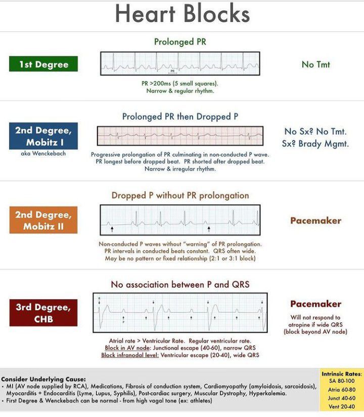 The three degrees of heart block are explained here.