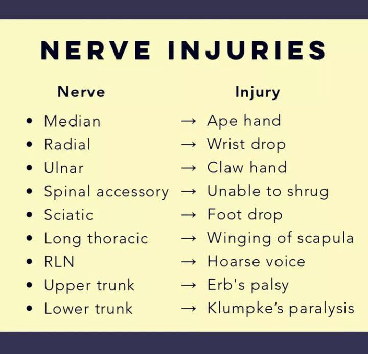 Nerves are fragile and can be damaged by pressure, stretching, or cutting. Injury to a nerve can stop signals to and from the brain, causing muscles not to work properly, and a loss of feeling in the injured area.