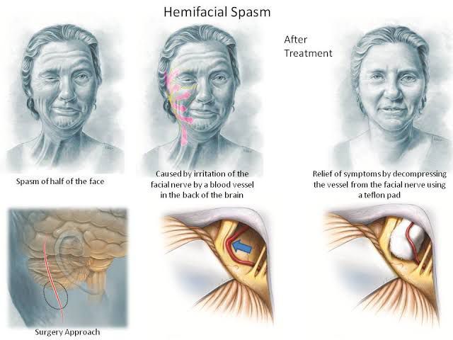Hemifacial spasm is a nervous system disorder in which the muscles on one side of your face twitch involuntarily. Hemifacial spasm is most often caused by a blood vessel touching or pulsating against a facial nerve. It may also be caused by a facial nerve injury or a tumor. Sometimes there is no known cause.