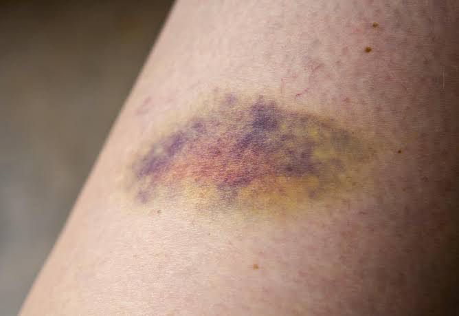 A bruise, also known as a contusion, is a type of hematoma of tissue, the most common cause being capillaries damaged by trauma, causing localized bleeding that extravasates into the surrounding interstitial tissues. Most bruises are not very deep under the skin so that the bleeding causes a visible discoloration.