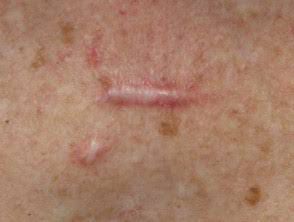 A hypertrophic scar is a thick raised scar. It's an abnormal response to wound healing in which extra connective tissue forms within the original wound area. The result a raised scar. Normally, a small wound to the top layer of your skin heals nicely. New skin forms as the wound heals.