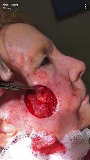 Removal of Basal Cell Carcinoma through MOHS surgery. This photo was taken after the extensive removal of the cancerous facial tissue, before suturing. CREDIT: Dr. Salar Hazany