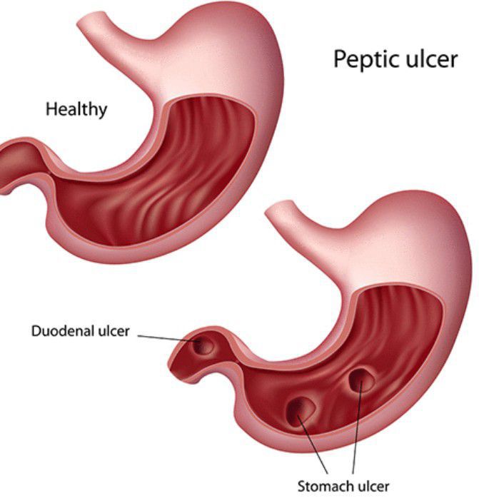 duodenal ulcer is a peptic ulcer that develops in the first part of the small intestine (duodenum). An esophageal ulcer occurs in the lower part of your esophagus. Peptic ulcers are open sores that develop on the inside lining of your stomach and the upper portion of your small intestine.