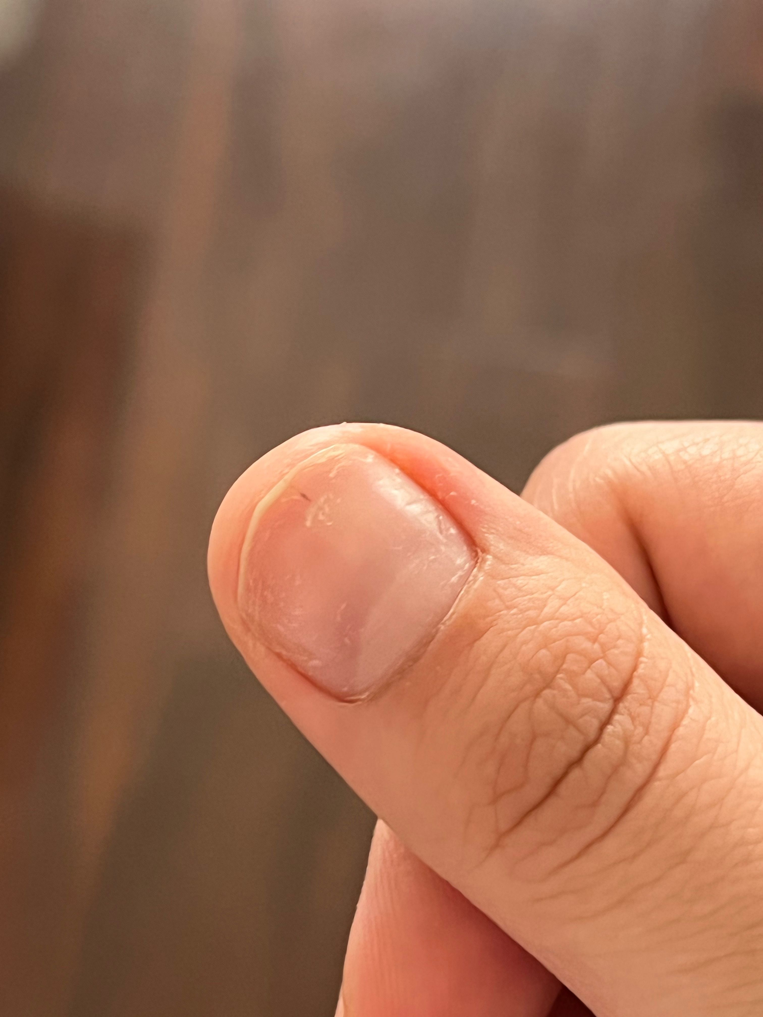 Thin black line on the nail of the thumb. Patient has had gel polish on nails for a while and after removing them, noticed the black line. What is this?