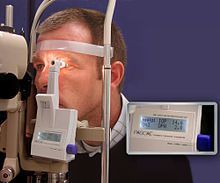 Tonometry is the procedure eye care professionals perform to determine the intraocular pressure, the fluid pressure inside the eye. It is an important test in the evaluation of patients at risk from glaucoma. Most tonometers are calibrated to measure pressure in millimeters of mercury