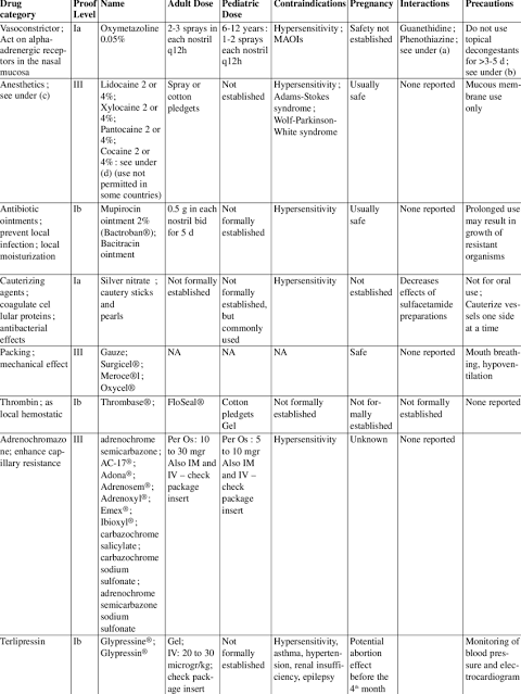 Drug therapy for epistaxes