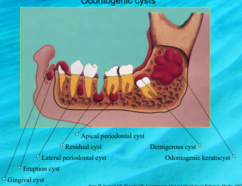 An odontogenic cyst is a fluid-filled sac that develops in the jaw bone over a tooth that hasn't erupted yet. The cysts, in most cases, affect the molars or canines, and they're second in prevalence after periapical cysts. These are cystic lesions that result from an infection in a tooth.