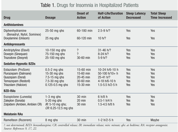 Drug therapy for insomnia in hospitalized patients