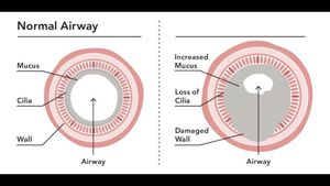 It's not cystic fibrosis because that causes thickening and inflammation of the smooth muscle.