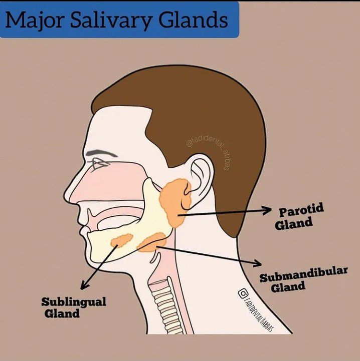 The major salivary glands are the largest and most important salivary glands. They produce most of the saliva in your mouth. There are three pairs of major salivary glands: the parotid glands, the submandibular glands, and the sublingual glands. parotid glands produce a serous, watery secretion. submaxillary (mandibular) glands produce a mixed serous and mucous secretion. sublingual glands secrete a saliva that is predominantly mucous in character.
