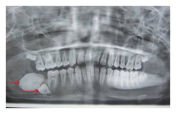 Complex odontoma is a common odontogenic tumor, and it is usually a hard painless mass, which rarely exceeds diameter of the tooth. Most of these lesions are discovered accidentally on radiographic examination. The common signs and symptoms include impacted permanent teeth and swelling.