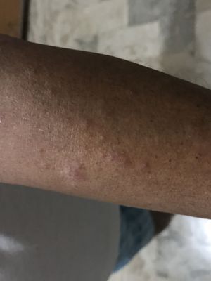No hx of insect bite or allergy or fever. Complains of itch so presribed loratadine. However can not rule out etiology