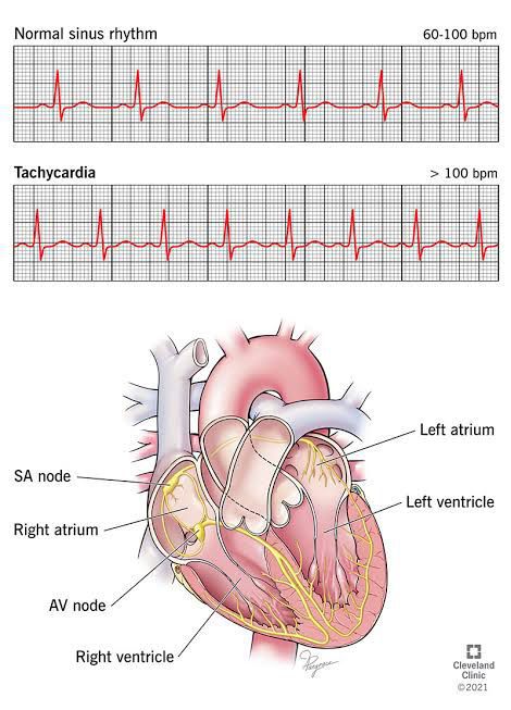 Tachycardia (tak-ih-KAHR-dee-uh) is the medical term for a heart rate over 100 beats a minute. Many types of irregular heart rhythms (arrhythmias) can cause tachycardia. A fast heart rate isn't always a concern. For instance, the heart rate typically rises during exercise or as a response to stress.
