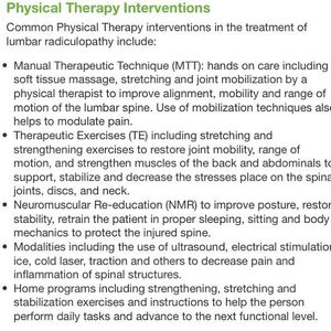 Common Physical Therapy interventions in the treatment of lumbar radiculopathy include: 👆