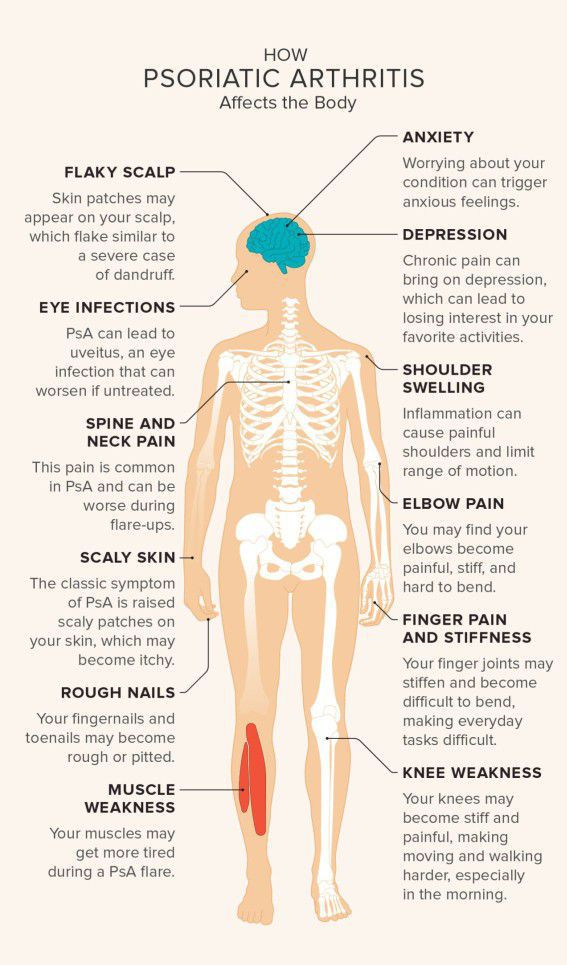 Psoriatic arthritis is a type of arthritis linked with psoriasis, a chronic skin and nail disease. Psoriasis causes red, scaly rashes and thick, pitted fingernails. Psoriatic arthritis is similar to rheumatoid arthritis (RA) in symptoms and joint swelling (inflammation). But it tends to affect fewer joints than RA.