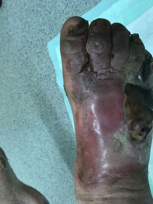 So far he lost his 5th digit and the necrotic tendons and is under vacuum therapy. The foot looks much better now.