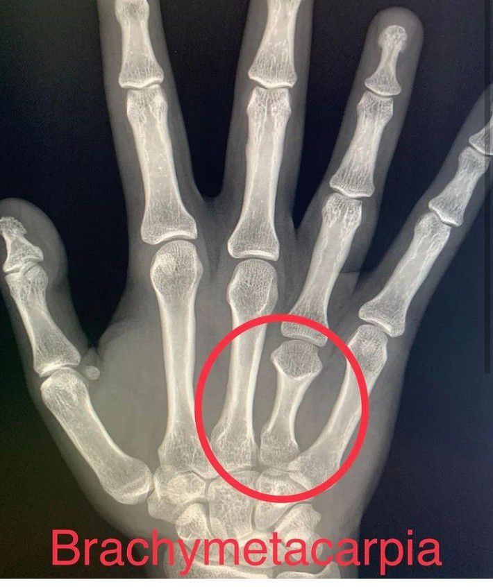 Brachymetacarpia is a rare congenital presentations denoted by shortening of metacarpals in which the deformity usually presents around childhood/early adolescence. It is caused when the growth plate of the metacarpal closes early, resulting in premature stoppage of growth. This can be a congenital condition or can be an acquired deformity following trauma, infection, tumor, radiation, or prior surgery.