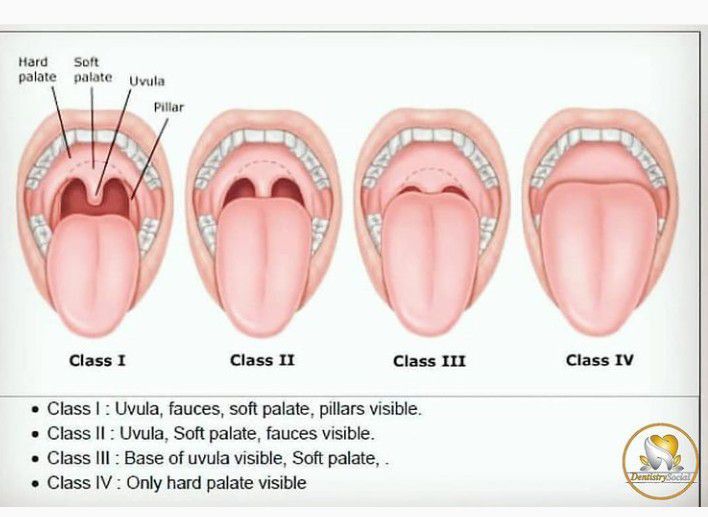 In anesthesia, the Mallampati score or Mallampati classification, named after the Indian-born American anaesthesiologist Seshagiri Mallampati, is used to predict the ease of endotracheal intubation. Modified Mallampati Scoring: Class I: Soft palate, uvula, fauces, pillars visible. Class II: Soft palate, major part of uvula, fauces visible. Class III: Soft palate, base of uvula visible. Class IV: Only hard palate visible.