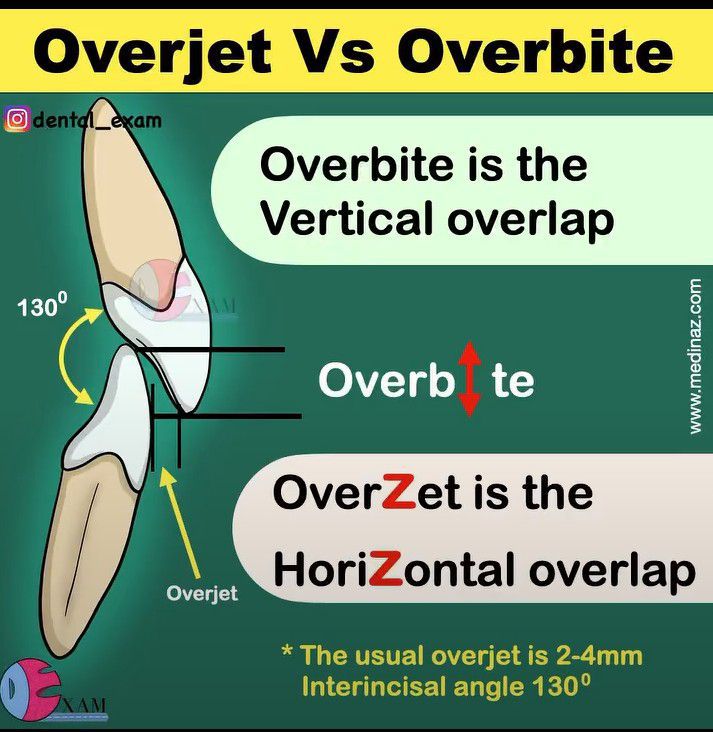 Here is a mnemonic to memorize the difference between overjet and overbite. By: https://www.instagram.com/tv/Cds1V0_qdo7/?igshid=YmMyMTA2M2Y=