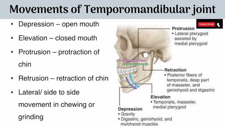 The basic anatomical function of the mandible is to: 1) open and close; 2) protrusion and retru- sion; and 3) lateral deviation which are provided through two types of basic movements. These movements are termed rotation and translation. Rotation occurs in the lower portion of the joint.
