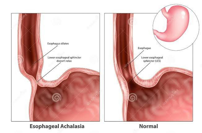 Its a condition in which the muscles of the lower part of the oesophagus fail to relax, preventing food from passing into the stomach. What causes achalasia? In most cases, it's caused by loss of the nerve cells that control the swallowing muscles in the esophagus. Healthcare providers don't yet know why these nerve cells are lost. In rare cases, achalasia is caused by a tumor.