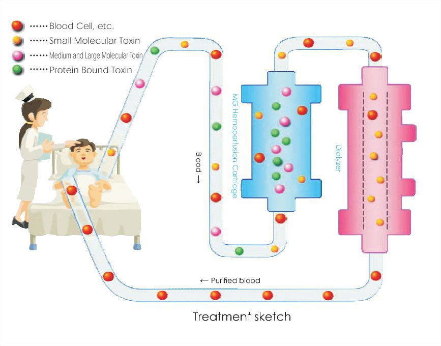 Hemoperfusion refers to the circulation of anticoagulated blood through an extracorporeal circuit with a disposable, adsorbent-containing cartridge (typically activated charcoal or an exchange resin). Two types of hemoperfusion are commonly used: Charcoal hemoperfusion, which has been used to treat liver (hepatic) failure, various types of poisoning, and certain autoimmune diseases when coated with antigens or antibodies.
