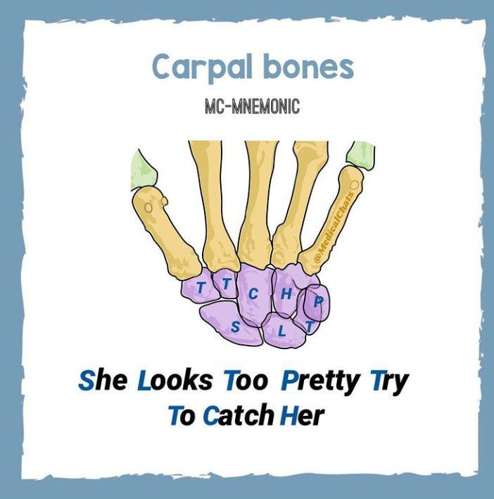 Here is a popular mnemonic to remember the carpals.