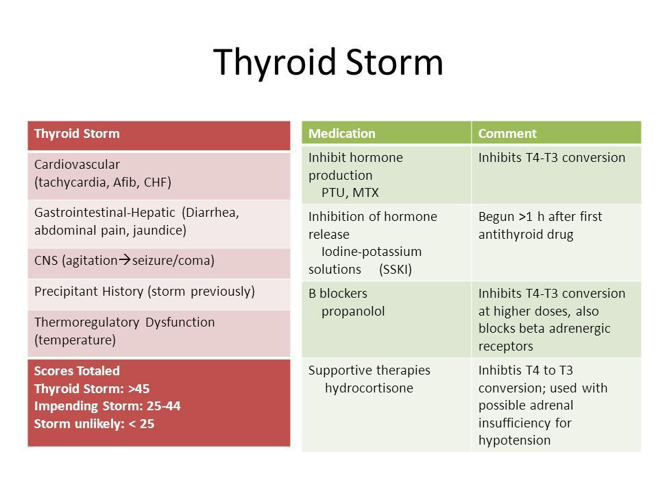 Thyroid storm, also referred to as thyrotoxic crisis, is an acute, life-threatening, hypermetabolic state induced by excessive release of thyroid hormones (THs) in individuals with thyrotoxicosis. Thyroid storm may be the initial presentation of thyrotoxicosis in undiagnosed children, particularly in neonates.