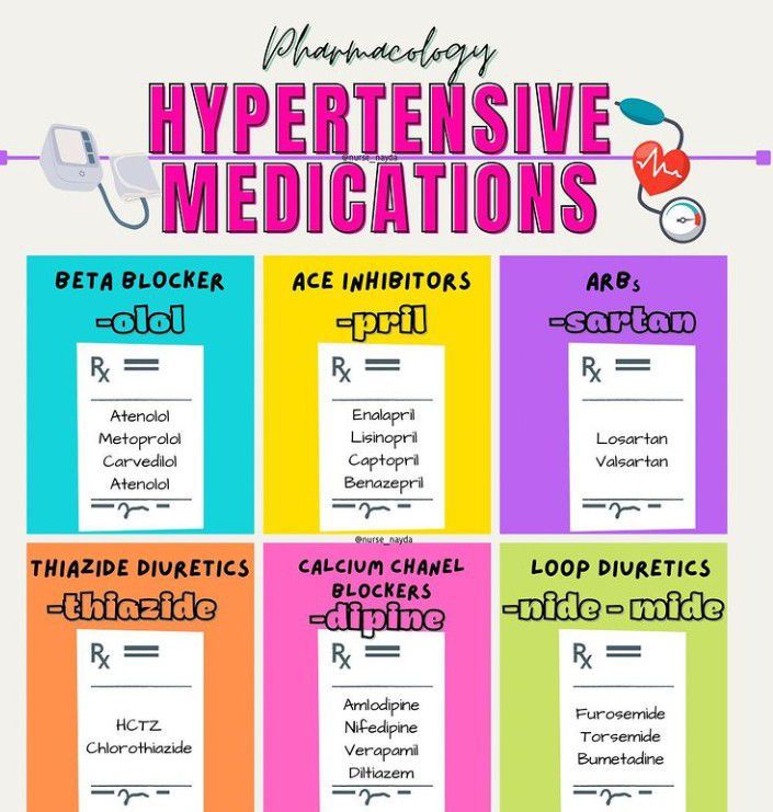 Here are different classes of hypertension medications. By: https://www.instagram.com/p/CdDnWDNOgi_/?igshid=YmMyMTA2M2Y=