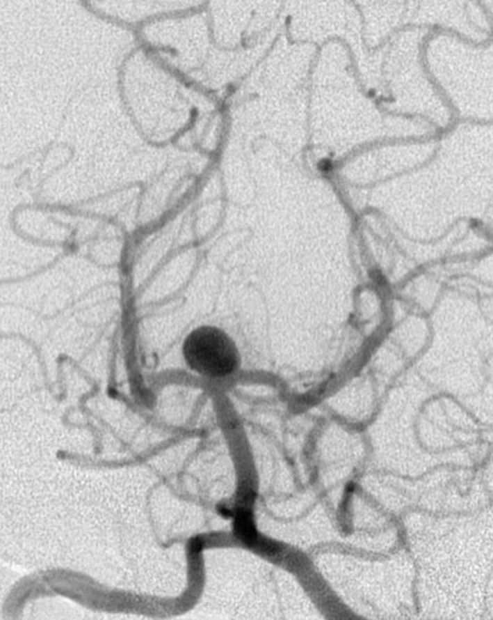 A berry aneurysm, which looks like a berry on a narrow stem, is the most common type of brain aneurysm. They make up 90 percent of all brain aneurysms, according to Stanford Health Care. Berry aneurysms tend to appear at the base of the brain where the major blood vessels meet, also known as the Circle of Willis.