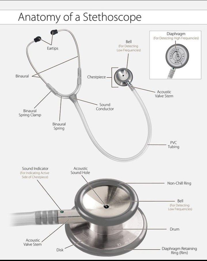 The stethoscope is an acoustic medical device for auscultation, or listening to internal sounds of an animal or human body. It typically has a small disc-shaped resonator that is placed against the skin, and one or two tubes connected to two earpieces.