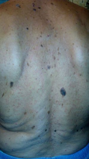 It s not a zona looks like a kaposi sarcoma. Stand up to biopsies and if there an immunodeficiency notion or a recent pulmonary disease. Look at nodes areas.