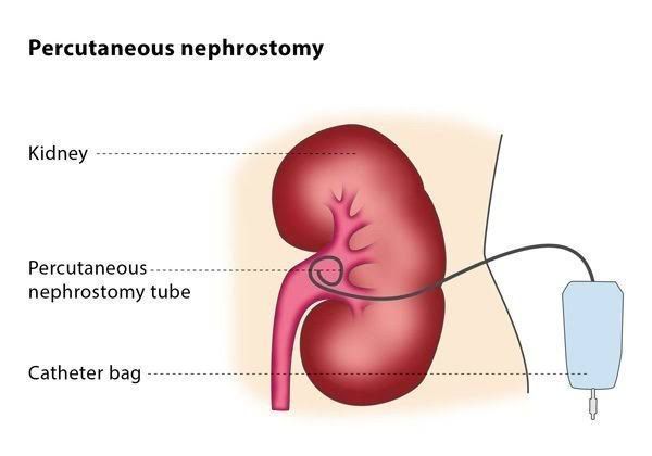 A nephrostomy is a procedure to drain urine from your kidney using a catheter (tube). Urine normally drains from your kidneys into your bladder through small muscular tubes (ureters). Tests have shown that one or both of your ureters has become blocked